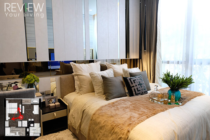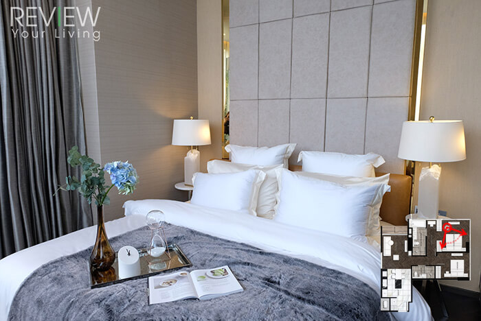 ต่อไปมาดูส่วนของเตียงนอนบ้าง ห้องจริงที่ได้จะได้เตียงนอนขนาด 6 ฟุตแบบในห้องตัวอย่างเลยนะคะ