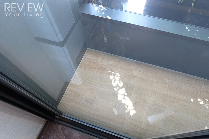ระเบียงมีขนาดกะทัดรัด แต่สามารถวางราวตากผ้าได้สบายๆ ซึ่งพื้นถูกลดระดับลงไปจากพื้นภายในห้องพักอาศัยเล็กน้อยเพื่อป้องกันน้ำจากระเบียงไหลเข้ามาในห้องพักค่ะ