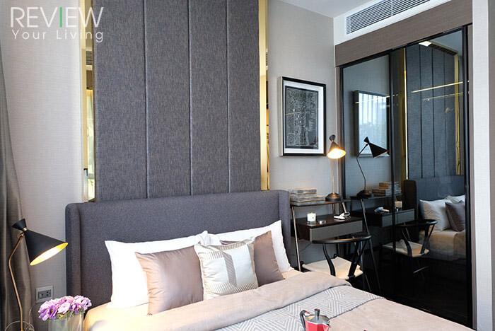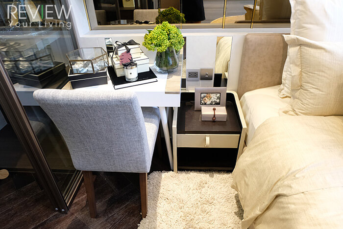 บริเวณข้างเตียงยังมีพื้นที่เหลือพอสำหรับวางโต๊ะข้างเตียง และโต๊ะเครื่องแป้งได้สบายๆ เลยนะคะ