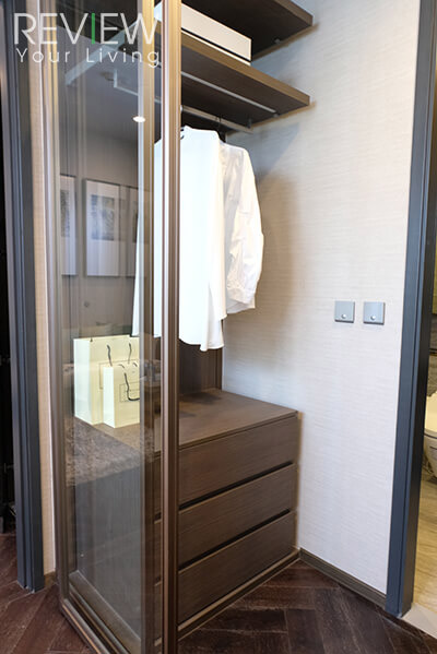 ส่วนของ Walk-in Closet จะมีประตูบานเลื่อนกั้นกลางระหว่างห้องนอนด้วยนะคะ