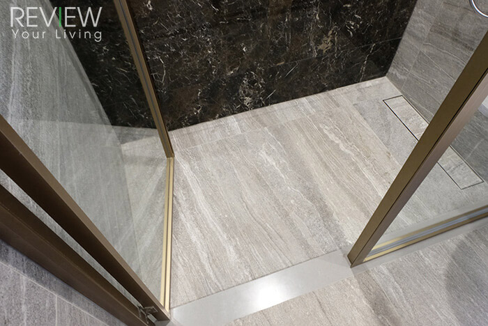 พื้นที่ส่วนเปียกจะถูกลดระดับลงมาจากพื้นที่ส่วนแห้งอีกเสต็ปหนึ่ง เพื่อกันไม่ให้น้ำจาก Shower Area ไหลออกไปสู่พื้นที่อื่นๆภายในห้องน้ำ
