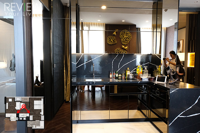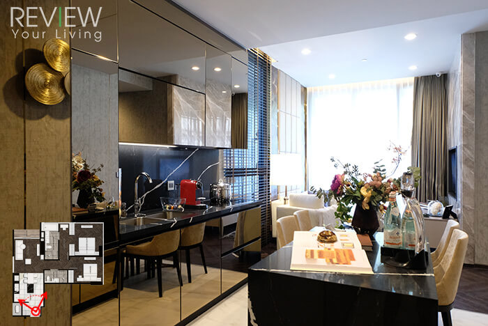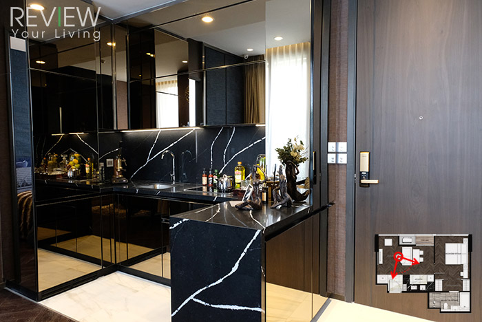 สำหรับไทป์นี้เปิดประตู Digital Door Lock เข้ามาจะเจอส่วนครัวเหมือนกับห้องตัวอย่างแรกเลยค่ะ เพียงแต่มีขนาดที่กว้างและใหญ่กว่า