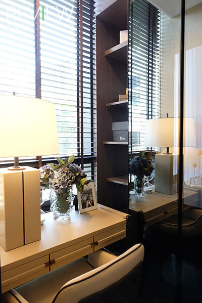 พื้นที่ในสุดตรงกลางจะเป็นตำแหน่งของโต๊ะเครื่องแป้งที่ทางโครงการ Built-in ไว้ให้เหมือนในห้องตัวอย่างนะคะ