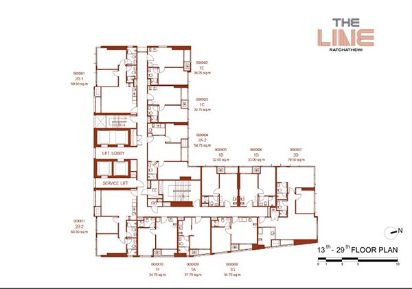 ขึ้นมาที่ชั้น 13-29 จะเป็นส่วนของห้องพักอาศัยทั้งหมด มีประมาณ 11 ห้องต่อชั้น