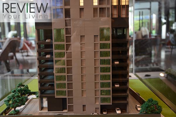 ตัวโครงการเป็นคอนโด High Rise สูง 38 ชั้น เป็นอาคารเดี่ยวแต่ออกแบบมาให้ตัวอาคารเป็นทรงตัว L จนถึงชั้นที่ 31 ส่วนชั้นที่เลยขึ้นไปจะมีจำนวนห้องต่อชั้นน้อยลง และด้วยจำนวนยูนิตรวมที่มากถึง 231 ยูนิต ทางโครงการจึงใส่ใจเพิ่มพื้นที่ส่วนกลาง และ Facility ต่างๆ ให้เพิ่มขึ้นเพื่อตอบสนองความต้องการของลูกบ้าน เริ่มตั้งแต่จำนวนที่จอดรถที่มากถึง 67% ซึ่งให้พื้นที่จอดตั้งแต่ชั้น 1-10 เลยทีเดียว แถมด้วยที่จอดรถอัจริยะ (Mechanical Parking) สำหรับผู้มาติดต่ออีก 16 คัน ส่วนที่พักอาศัยจะเริ่มตั้งแต่ชั้นที่ 11 ขึ้นไป โดยพื้นที่ส่วนหนึ่งของชั้นที่ 11 จะถูกแบ่งเป็นพื้นที่ของ Facility หลัก ทั้งสระว่ายน้ำขนาดใหญ่ ห้องออกกำลังกาย ห้องอบไอน้ำ พร้อม Outdoor Theater ริมสระว่ายน้ำ ในขณะที่พื้นที่บนชั้น 31 ส่วนหนึ่งจะเป็นห้องสมุดภายในอาคาร และห้องอ่านหนังสือที่จัดเตรียมไว้เป็นสัดส่วน ถือว่าเป็น Co-working Space สำหรับนั่งทำงาน ประชุมงาน หรือติวหนังสือก่อนสอบได้เลย ซึ่งพื้นที่บนชั้นนี้มาพร้อมกับสวนกลางแจ้ง และวิวสีเขียวสวยๆ สบายตา และถ้าขึ้นไปที่ชั้น 38 ก็ยังมี Rooftop Garden ที่จัดเป็นพื้นที่สีเขียวขนาดใหญ่ สามารถใช้เป็นจุดชมวิวและที่พักผ่อนได้ในคราวเดียวกัน