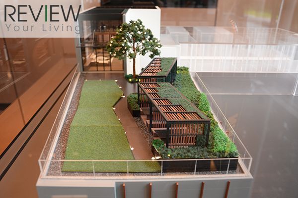 โมเดลจำลองของสวนสีเขียวที่เชื่อมต่อกับห้องสมุดบนชั้น 31