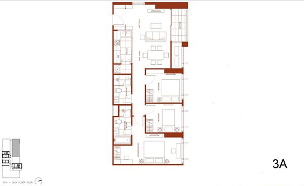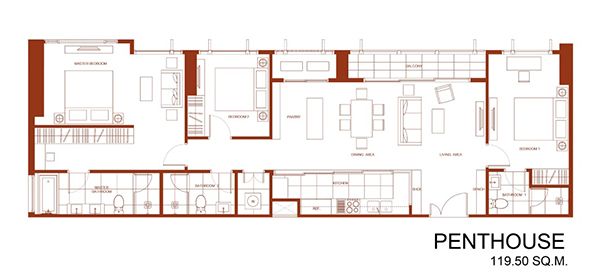 แปลนห้อง Penthouse (3 ห้องนอน) ขนาด 119.50 ตารางเมตร