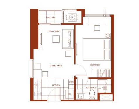 แปลนห้อง Type 1E ขนาด 1 ห้องนอน 1 ห้องน้ำ ขนาด 34.25 ตารางเมตร