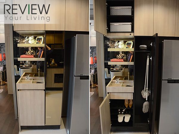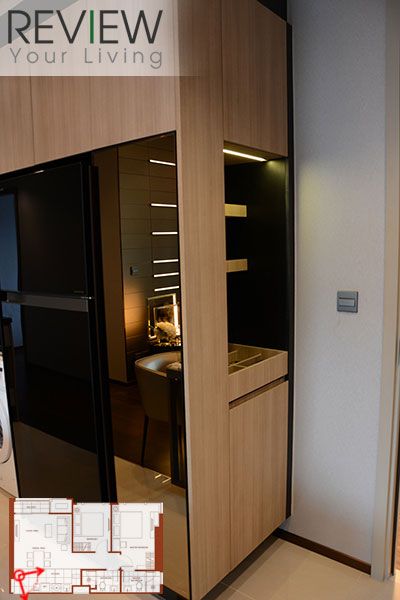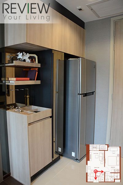 ฝั่งตรงข้ามครัวจะเป็นจุดวางตู้เย็น และตู้เก็บของที่โครงการ Built in มาให้