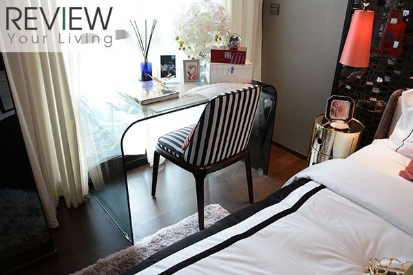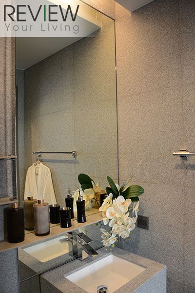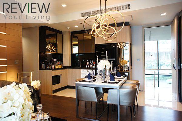 ซึ่งการออกแบบก็ตอบโจทย์ให้พื้นที่ใช้สอยที่เป็นส่วนตัวกับสมาชิกทุกคน รวมถึงการ Upgrade วัสดุอุปกรณ์บางชิ้นให้สูงขึ้นด้วยถึงแม้ว่าโดยรวมทางโครงการจะเลือกใช้วัสดุแบรนด์คุณภาพ หรือวัสดุนำเข้าอยู่แล้วก็ตาม อย่างตัวอย่างของวัสดุอุปกรณ์ที่ถูก Upgrade ขึ้นมาก็เช่น ในส่วนครัวเตาไฟฟ้าจะได้เป็นเตา 4 หัว พร้อมฮูดดูดควันของ Küppersbusch ซึ่งเป็นแบรนด์นำเข้าจากเยอรมัน เช่นเดียวกับซิงค์ล้างจานที่เพิ่มมาเป็น 2 หลุม นอกจากนั้นจะมีตู้เย็นและไมโครเวฟ Built in ของ Foster แบรนด์จากอิตาลีเพิ่มมาให้อีกด้วย ส่วนห้องน้ำทุกห้องให้เป็นสุขภัณฑ์อัจฉริยะ Cotto รุ่น The Tunio ที่มีฟังก์ชันสุดล้ำ Automatic Flushing Sensor และรีโมทคอนโทรลแบบผิวสัมผัส และยังได้ความเป็น private มากขึ้น เพราะเป็น High Floor เริ่มตั้งแต่ชั้น 31 -37 มีจำนวนยูนิตต่อชั้นน้อย ที่สำคัญวิวที่ได้รับจะเป็นวิวเมือง เปิดโล่ง มุมสูง