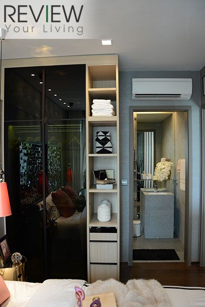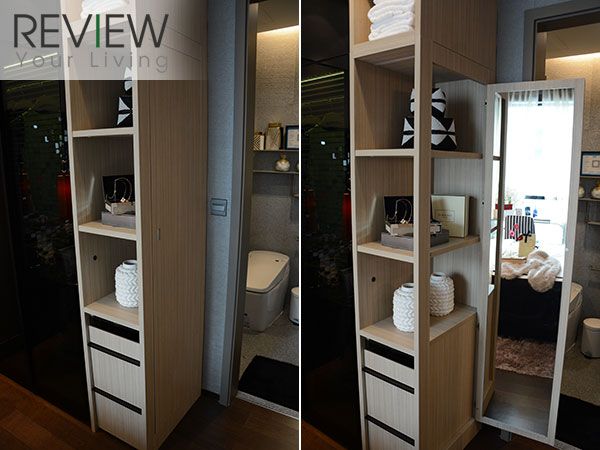 ติดกับตู้เสื้อผ้าจะมีชั้นวางของเล็กๆ พร้อมกับกระจกเงาที่สามารถปิด-เปิด ได้ ช่วยให้ดูเรียบร้อยขึ้น