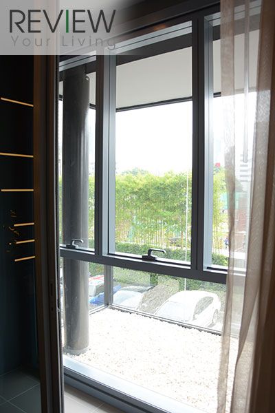 ส่วนหน้าต่างจะได้บานประมาณนี้นะครับ ที่เห็นเป็นกระจกข้างๆ หน้าต่างนั่นไม่ใช่ตู้เก็บของนะครับ แต่เป็นส่วนของที่วางคอมเพรสเซอร์แอร์ที่ยื่นเข้ามาในห้องนอน