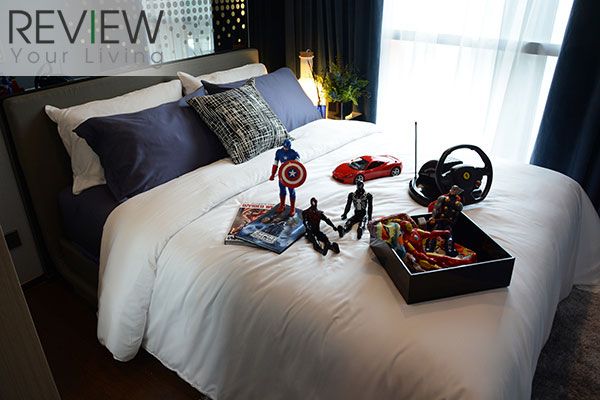 ข้างเตียงฝั่งที่ติดกับหน้าต่าง มีที่เหลือพอให้วางโต๊ะทำงานเลยทีเดียว แต่โครงการวางให้ดูเป็นตัวอย่างเฉยๆ นะครับ ไม่ได้แถมให้ด้วย