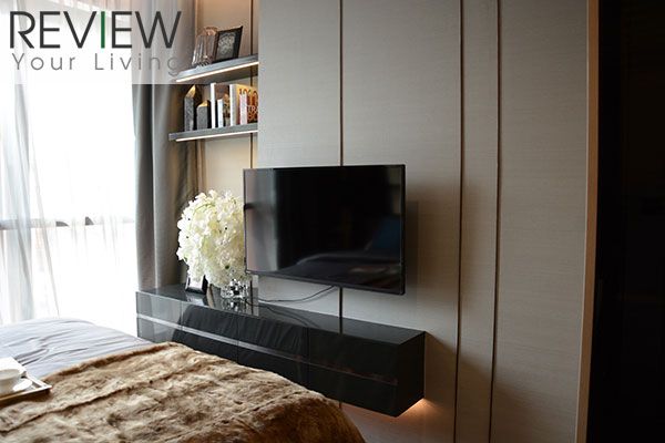 ด้านปลายเตียงโครงการ Built in เป็นชั้นวางทีวีพร้อมกับที่เก็บของ