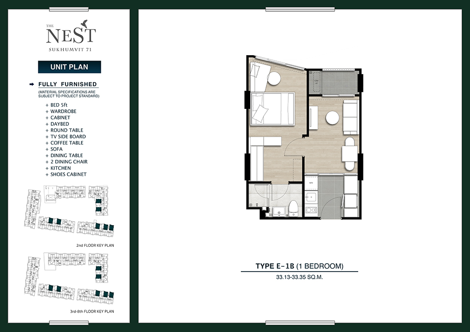 – แบบ 1 Bedroom ขนาด 24.69-33.35 ตร.ม.