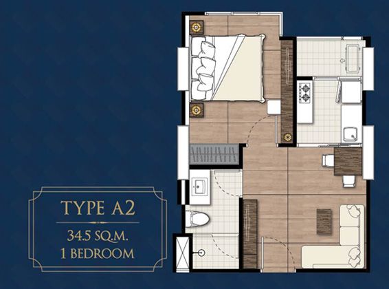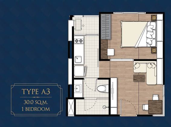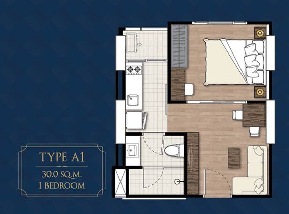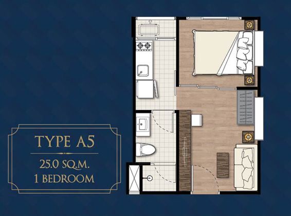 - 1 ห้องนอน 1 ห้องน้ำ ขนาด 25, 30 และ 34.5 ตารางเมตร
