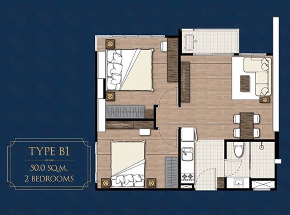 - 2 ห้องนอน 1 ห้องน้ำ ขนาด 50 ตารางเมตร
