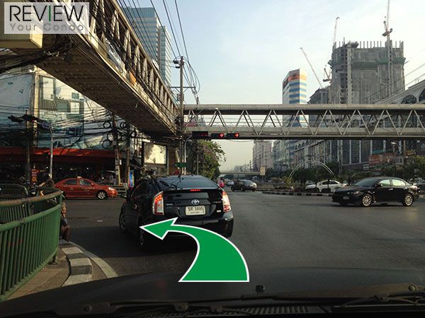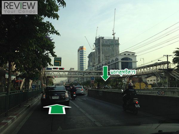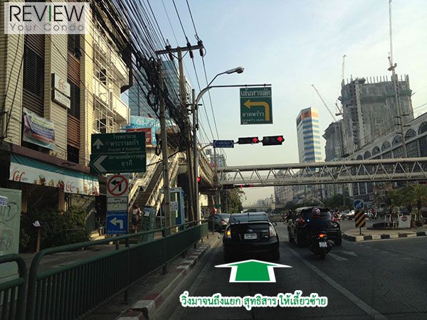 เมื่อมาถึงแยกสุทธิสาร ให้เตรียมตัวเลี้ยวซ้าย