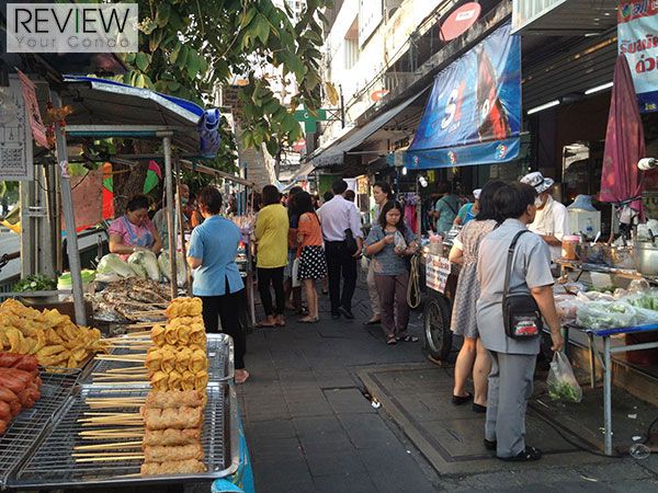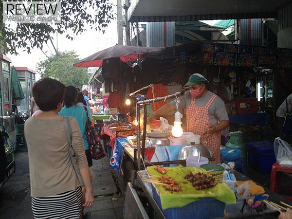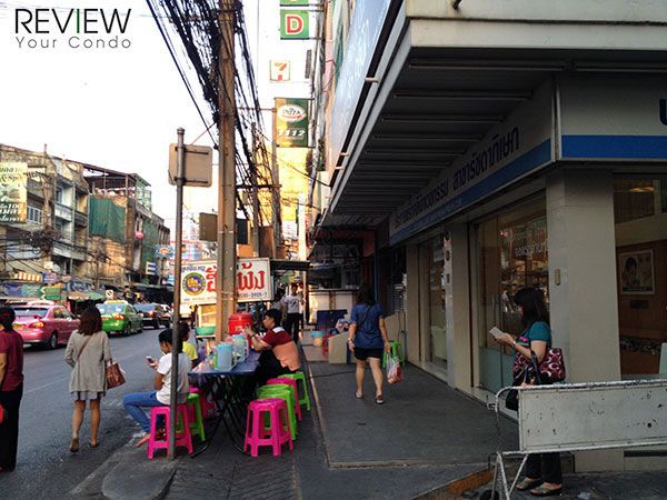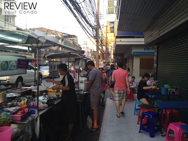 เมื่อเข้ามาถนนสุทธิสาร ริมทางทั้งสองฝั่งจะมีร้านค้าวางเต็มไปหมด