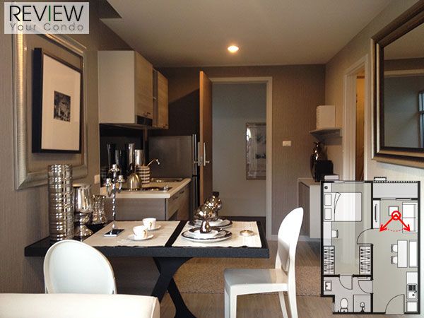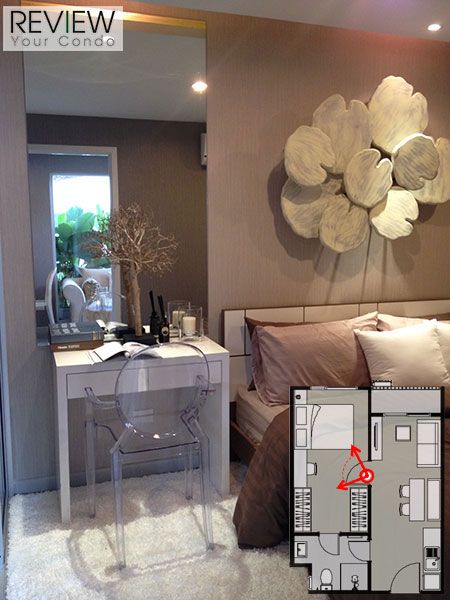 The Privacy รัชดา-สุทธิสาร มีแบบห้องให้เลือกทั้งแบบ 1 ห้องนอน ซึ่งมีพื้นที่ใช้สอยเริ่มต้นที่ 28 ตร.ม. – 42 ตร.ม. ส่วนห้องแบบ 2 ห้องนอน จะมีพื้นที่ 50 ตร.ม. สำหรับห้องตัวอย่างที่ทางโครงการเตรียมไว้มีแบบ 1 ห้องนอน ทั้งขนาด 28 ตร.ม. และ 33 ตร.ม. ซึ่งทั้ง 2 ห้องมีการจัดวาง Lay out คล้ายคลึงกันมาก พอเปิดประตูห้องเข้ามาก็เจอพื้นที่ครัวซึ่งมีประตูกระจกบานเลื่อนแยกไว้เป็นสัดส่วน ถัดเข้าไปด้านในเป็นมุมรับประทานอาหารและพื้นที่ห้องนั่งเล่น ซึ่งทั้งหมดนี้กินพื้นที่ยาวจนถึงระเบียงเลยทีเดียว ส่วนห้องนอนนั้นแยกออกไปอีกด้าน ซึ่งมีการจัดแบ่งไว้เป็นสัดส่วน ภายในห้องนอนมีพื้นที่สำหรับ walk in closet ด้วย ซึ่งห้องทั้ง 2 ขนาดจะต่างกันก็ตรงพื้นที่ในส่วนนี้ด้วย แน่นอนว่าห้องขนาด 33 ตร.ม. ต้องมีพื้นที่ในส่วนของห้องแต่งตัวมากกว่า แถมยังติดประตูกระจกบานเลื่อนกันพื้นที่ห้องแต่งตัวไว้อย่างชัดเจน ต่างจากห้องขนาด 28 ตร.ม. ที่มีพื้นที่เหลือพอให้วางตู้เสื้อผ้าแบบธรรมดาไว้หน้าห้องน้ำเท่านั้น ภายในห้องนอนเมื่อวางเตียงขนาด 5 ฟุตเข้าไปแล้ว ก็ยังมีพื้นที่ปลายเตียงเหลืออยู่แค่เล็กน้อยเท่านั้น อย่างมากก็ทำได้แค่แขวนทีวีติดผนังที่ปลายเตียง ข้างเตียงวางโต๊ะเล็กๆ ไว้ที่หัวเตียงได้อีกนิดหน่อย พื้นที่ใช้สอยในห้องจึงค่อนข้างมีอยู่อย่างจำกัดเหมือนกัน การบริหารพื้นที่เก็บของเป็นสิ่งจำเป็นที่ควรงัดเทคนิคต่างๆ มาใช้ เพื่อไม่ให้ห้องรกจนเกินไป เรื่องเฟอร์นิเจอร์ภายในห้อง ทางโครงการมี Built-in มาให้ด้วย ทั้งห้องครัว เตาไฟฟ้า เครื่องดูดควัน อ่างล้างจาน ตู้เก็บของ ตู้เสื้อผ้า และชุดสุขภัณฑ์ในห้องน้ำ รวมถึงระบบ Digital Door Lock ที่ติดตั้งมาให้ทุกห้อง ช่วยเพิ่มความรู้สึกทันสมัยและหรูหราได้อีกไม่น้อยเลยครับ