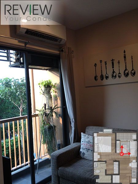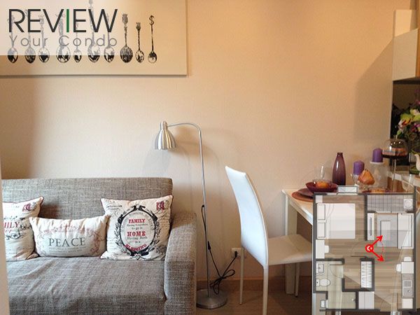 สำหรับห้องตัวอย่างของโครงการ The Privacy ติวานนท์ เรามีโอกาสได้เข้าไปชมห้องที่โครงการ The Privacy งามวงศ์วานแทน เนื่องจากสำนักงานขายได้ย้ายไปตั้งอยู่ที่งามวงศ์วาน ซึ่ง 2 โครงการนี้มีความใกล้เคียงกันทั้งตัวแปลนและ Lay out ห้อง แบบห้องที่มีมากที่สุดก็คือห้องแบบ 1 ห้องนอน ขนาด 33 ตร.ม. ซึ่งถ้าใครที่เคยมีโอกาสได้ชมห้องตัวอย่างในเครือ The Privacy มาบ้าง ก็คงจะเห็นถึงความใกล้เคียงกันกับโครงการอื่นๆ ที่ผ่านมา แต่ห้องที่นี่จะขายให้แบบ Fully Furnished เลย เปิดประตูห้องเข้ามาก็จะเจอส่วนของห้องครัวก่อนเลย ซึ่งเป็นครัวเล็กๆ ขนาดกำลังเหมาะกับการเตรียมอาหารเล็กๆ น้อยๆ เนื่องจากเป็นครัวแบบเปิด แน่นอนว่าเคาน์เตอร์ครัว พร้อมซิงค์ล้างจานก็ Built-in มาให้แล้ว ส่วนด้านตรงข้ามกับ Pantry ครัวจะเป็นห้องน้ำ ที่สามารถเปิดประตู้เข้าห้องน้ำได้ทั้งจากทางห้องครัวและห้องนอนครับ ถัดจากบริเวณครัวเข้ามาก็จะเป็นพื้นที่นั่งเล่นติดกับระเบียง โดยระยะระหว่างโซฟากับผนังนั้นไม่ได้กว้างมากนัก ดังนั้นแนะนำให้แขวนทีวีติดผนังจะดีกว่ามาก นอกจากจะประหยัดพื้นที่แล้วยังช่วยเพิ่มระยะการดูทีวีได้ด้วยครับ ติดกันกับพื้นที่นั่งเล่นเป็นประตูกระจกบานเลื่อนออกไปยังระเบียง ซึ่งมีพื้นที่ให้ใช้งานได้เต็มที่ เพราะทางโครงการเลือกที่จะแขวนคอมเพรสเซอร์แอร์ไว้ด้านบน เราจึงได้พื้นที่ใช้สอยบริเวณระเบียงไปเต็มๆ ธรณีประตูระเบียงก็ก่อมาให้สูงมาก ได้ข้อดีเรื่องไม่ต้องห่วงว่าน้ำจากระเบียงจะท่วมเข้าห้องครับ