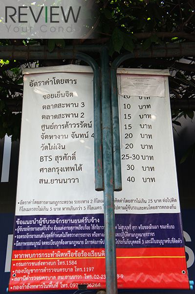 สำหรับใครที่ไม่ได้ใช้รถส่วนตัว การเดินทางด้วยระบบขนส่งมวลชนท้องถิ่นก็จัดว่าสะดวกไม่แพ้กัน เพราะมีรถสองแถววิ่งผ่านโครงการตลอดทั้งวัน ซึ่งสายหลักๆ ที่น่าจะได้พึ่งพาอาศัยแน่ๆ เลยก็คือ สาย 1256 เพราะวิ่งผ่านโครงการไปออกถนนสาทร และสุดสายที่ท่าน้ำสะพานตากสิน ดังนั้นถ้าต้องการจะไปต่อรถไฟฟ้า BTS ก็สามารถใช้บริการรถสองแถวสายนี้ไปลงยังสถานีสุรศักดิ์ หรือสถานีตากสินก็ได้ครับ แต่ถ้ากังวลกับปัญหารถติดก็ต้องใช้บริการพี่วินมอเตอร์ไซค์รับจ้างซึ่งตั้งวินอยู่หน้าโครงการเลย รับรองว่ารวดเร็วทันใจแน่ๆ ในขณะเดียวกันก็ยังมีรถตุ๊ก ตุ๊ก และแท็กซี่วิ่งผ่านไปมาขวักไขว่ หาเรียกได้ง่ายมากๆ ชนิดที่ไม่ต้องกลัวถูกโชเฟอร์ปฏิเสธไม่รับผู้โดยสารกันเลย เพราะพลาดคันนี้เดี๋ยวคันหลังก็มีให้โบกตามมาติดๆ หรือถ้าเดินออกมาทางปากซอยจันทน์ 18/7 อีกหน่อย ก็จะเพิ่มทางเลือกในการเดินทางด้วยรถสองแถวได้มากขึ้น เพราะมีสองแถวอีกหลายสายที่วิ่งไปทั้งฝั่งพระราม 3 และฝั่งเจริญกรุง รวมถึงรถเมล์ก็มีกับเค้านะครับ ถึงแม้จะมีแค่สาย 35 วิ่งผ่านมาแค่สายเดียวก็เถอะ