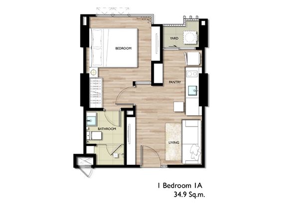 Type 1A 1 ห้องนอน 1 ห้องน้ำ ขนาด 34.90 ตารางเมตร