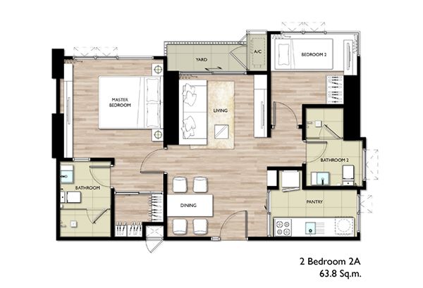 Type 2A 2 ห้องนอน 2 ห้องน้ำ ขนาด 63.80 ตารางเมตร