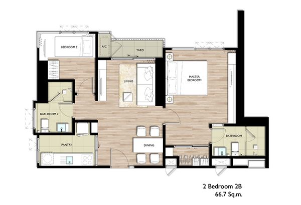 Type 2B 2 ห้องนอน 2 ห้องน้ำ ขนาด 66.70 ตารางเมตร