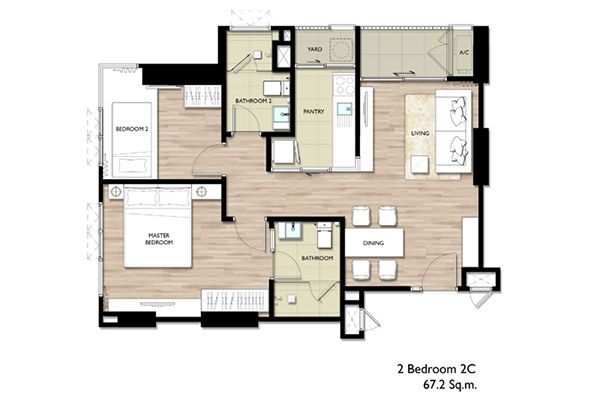Type 2C 2 ห้องนอน 2 ห้องน้ำ ขนาด 66.70 ตารางเมตร
