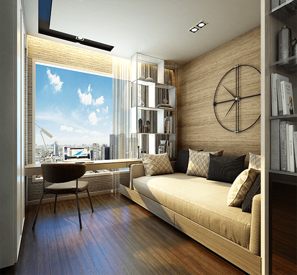 - 1 ห้องนอน 1 ห้องน้ำ  ขนาด 30 – 43 ตารางเมตร
