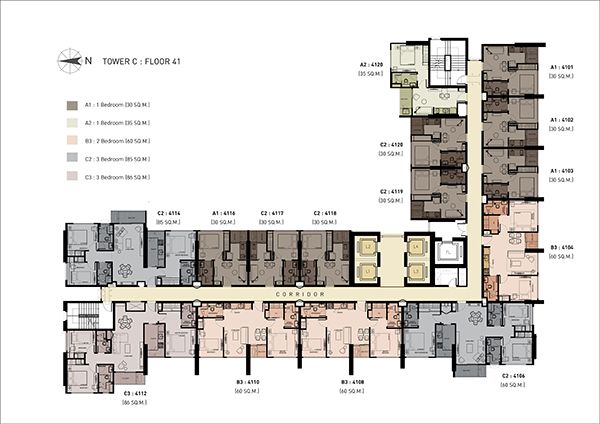 - ลักษณะคอนโด  High Rise สูง 41 ชั้น 3 อาคาร