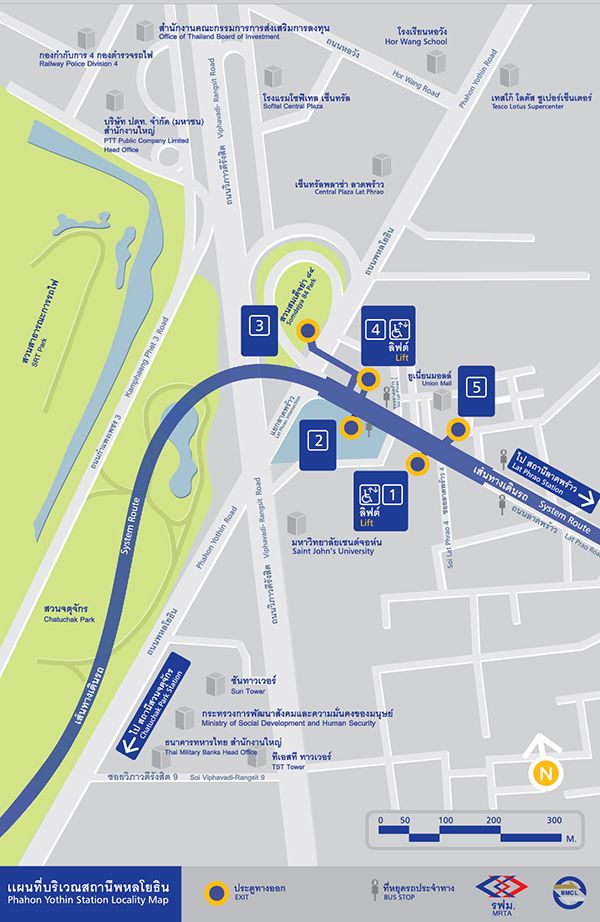 แผนที่สถานีรถไฟฟ้า MRT พหลโยธิน จะเห็นว่าเลือกออกได้ทั้งทางออกที่ 1 และ 2