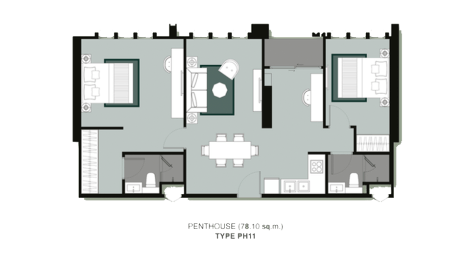 Floor Plan ชั้นที่ 36 Type Penthouse จะถูกวางเอาไว้ที่ชั้น 36 นี้ และเพียงแค่ขึ้นไปอีกหนึ่งชั้นก็จะเจอ Facility ของชั้นที่ 37