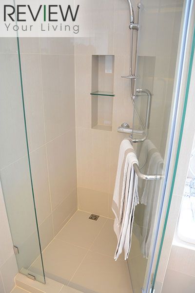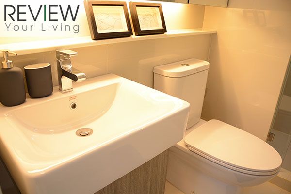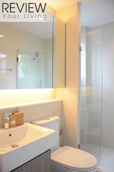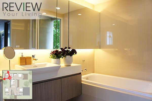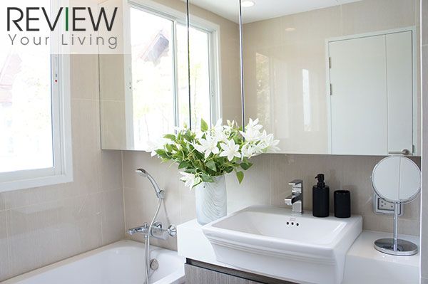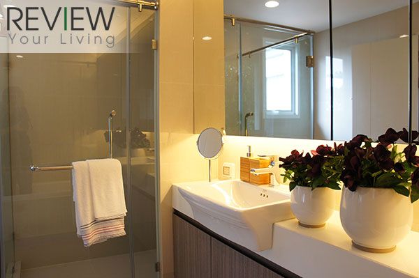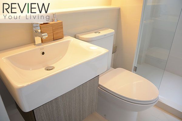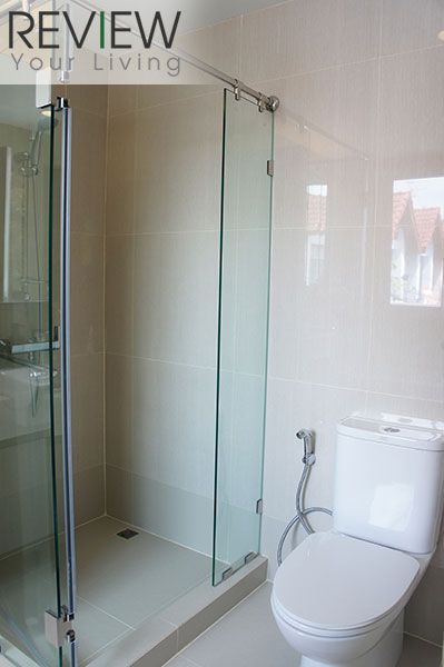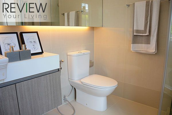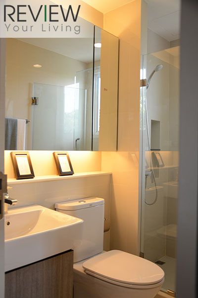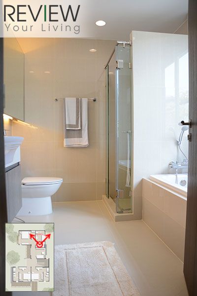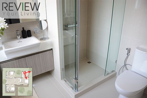 ภายในห้องน้ำ จัดวางห้องอาบน้ำ และอ่างอาบน้ำไว้คนละด้าน รวมถึงมุมทำธุระส่วนตัวก็จัดที่ทางไว้อย่างลงตัว