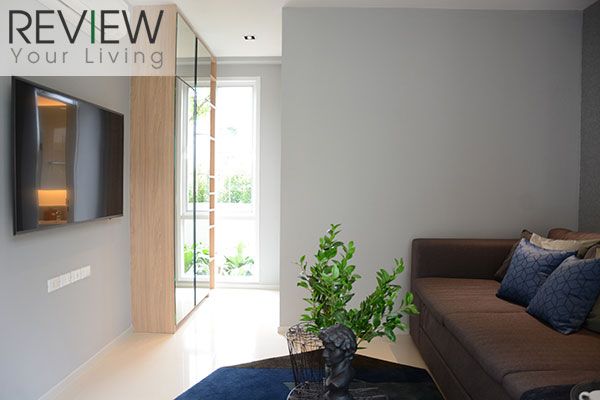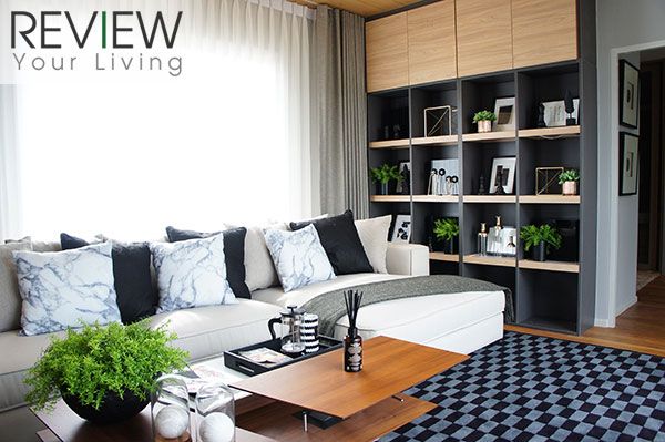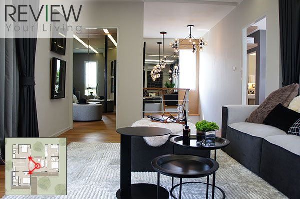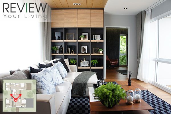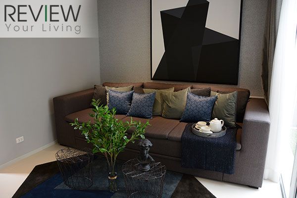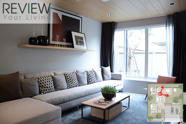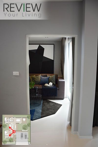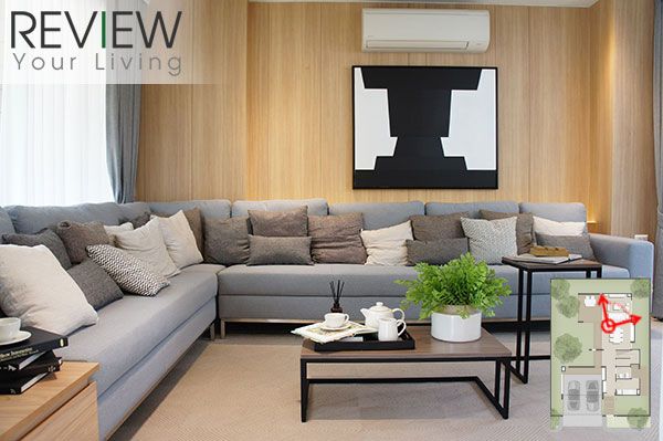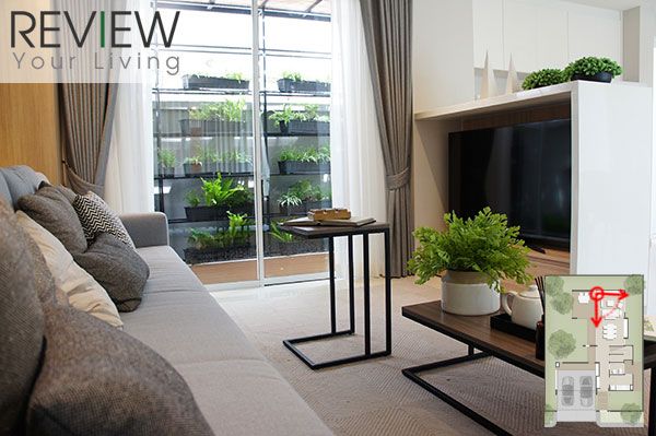 ด้านในสุดเป็น Living Area กว้าง ทางโครงการตกแต่งด้วยโซฟายาวเข้ามุมเพื่อเป็นพื้นที่สำหรับทุกคนในครอบครัว
