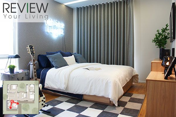ห้องแรกตกแต่งในโทนสีเข้มขรึม ภายในมีพื้นที่ใช้สอยขนาดกำลังดี แถมยังมีห้องน้ำในตัวอีกด้วย