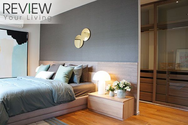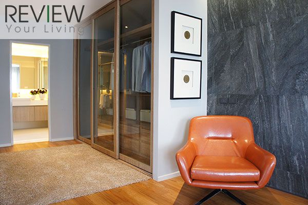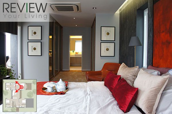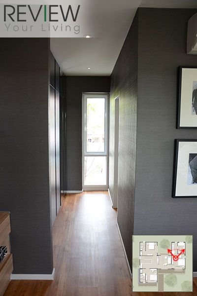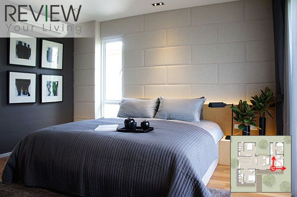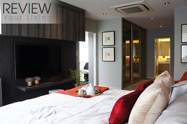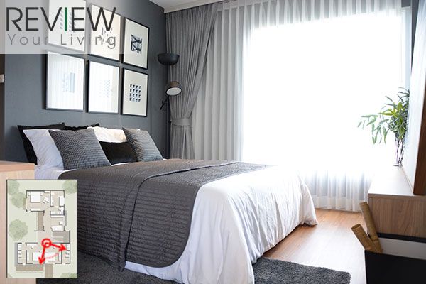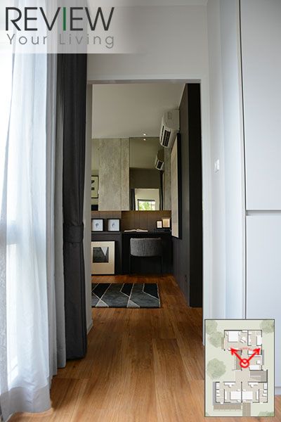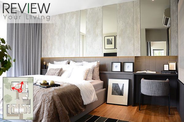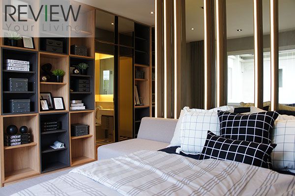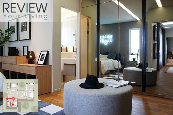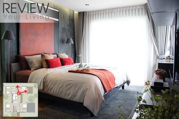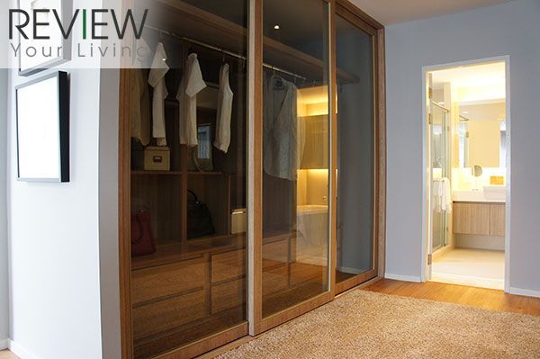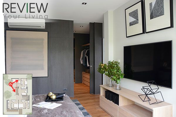 พื้นที่ภายในห้องกว้างมากพอที่จะออกแบบให้มี Walk-in Closet เป็นสัดส่วนในบริเวณทางเดินไปยังห้องน้ำภายในห้อง