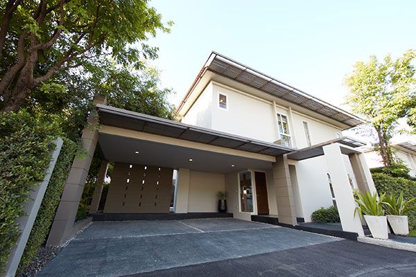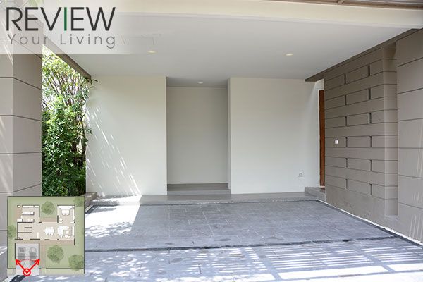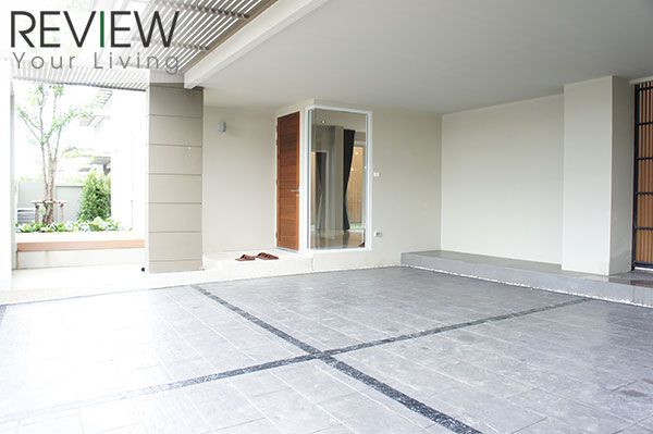 บริเวณที่จอดรถจะปูด้วยคอนกรีตแสตมป์ สามารถจอดรถได้ 2 คัน
