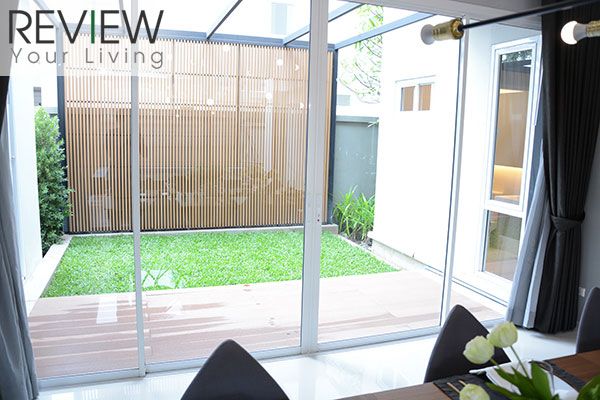 มาถึงตัวบ้านกันบ้าง ทางโครงการเลือกดีไซน์ให้ภายในบ้านมี Courtyard หลากหลายมุม มองไปทางไหนก็สามารถมองเห็นต้นไม้น้อยใหญ่ในบรรยากาศธรรมชาติได้อย่างเต็มตา ในขณะเดียวกันก็ยังคงความเป็นส่วนตัวไว้ ไม่ได้เปิดโล่งไปเสียทั้งหมด ทำให้ลูกบ้านสามารถทำกิจกรรมครอบครัวได้อย่างสะดวก