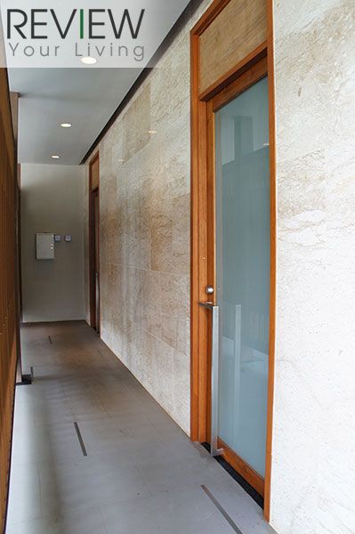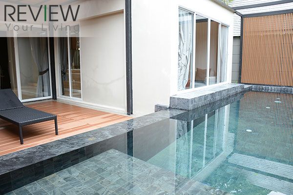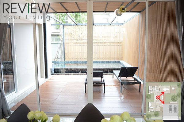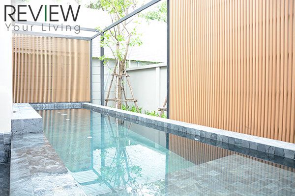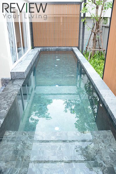ตามแบบบ้านมาตรฐาน ตัวบ้านจะมี Courtyard ขนาดใหญ่ และมีนั่งเล่นในสวนเกือบรอบตัวบ้าน แต่บ้านตัวอย่างหลังนี้ใช้พื้นทีส่วนหนึ่งของ Courtyard ปรับให้เป็นสระว่ายน้ำแทน