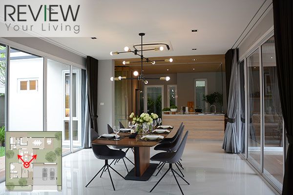 เปิดประตูเข้าบ้านมาจะเจอกับ Dining Area ซึ่งอยู่ตรงกลางระหว่าง Courtyard ทั้ง 2 ด้านของตัวบ้าน