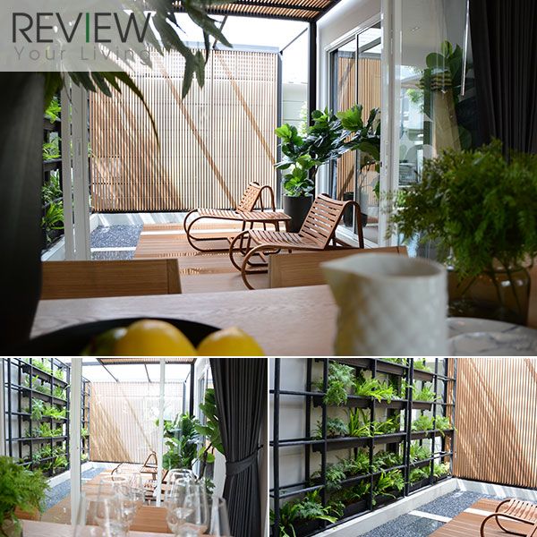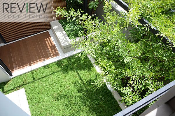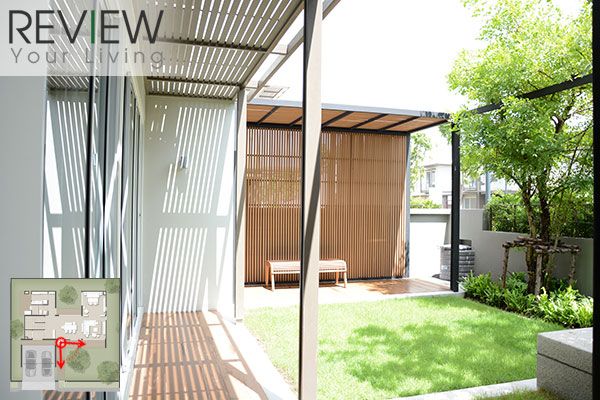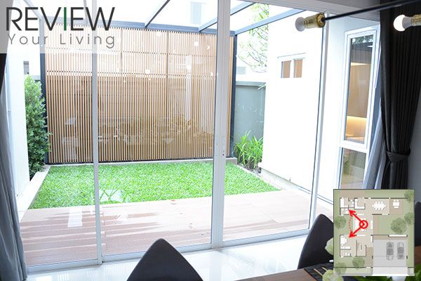 อีกด้านของ Living Area ยังมี Courtyard อีกอัน นอกจากจะทำให้บรรยากาศใน Living Area ดูโปร่งสบายแล้ว ยังช่วยเพิ่มพื้นที่สีเขียวให้กับตัวบ้านด้วย