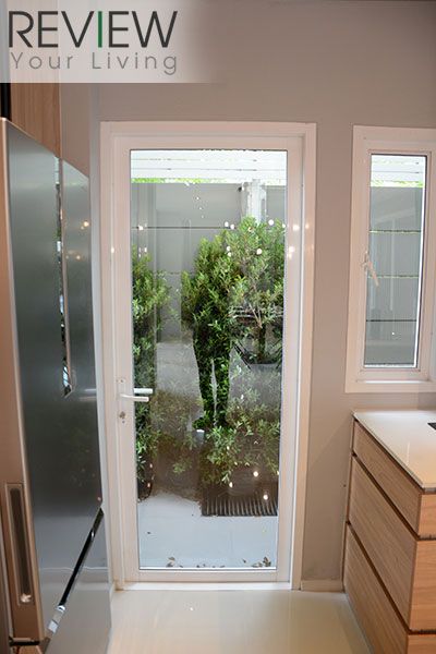 ประตูด้านหลังห้องครัว สามารถเปิดออกไปสู่ลานซักล้างด้านหลังบ้าน และห้องแม่บ้านที่อยู่ทางด้านหลังด้วย