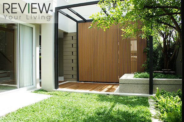 บ้าน Denfe มี Courtyard ขนาดใหญ่บริเวณด้านหน้าของตัวบ้าน บรรยากาศเป็นสีเขียวสบายตามากๆ