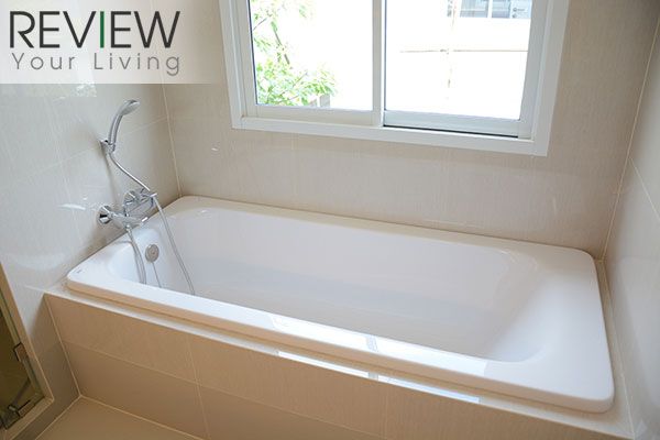 ภายในห้องน้ำกั้นห้องอาบน้ำมาให้เรียบร้อย รวมถึงติดตั้งอ่างอาบน้ำมาอีกเช่นกัน