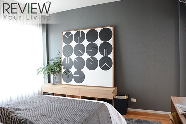 มาดูห้องนอนเล็กห้องแรกกันบ้าง แน่นอนว่าพื้นที่ใช้สอยภายในห้องกว้างขวางเหลือเฟือขนาดวางเตียงและโซฟาเบดไว้คู่กันแล้วยังเหลือพื้นที่สบายๆ