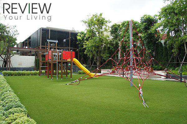 ในขณะเดียวกัน พื้นที่ส่วนกลางภายในโครงการก็ถูกจัดสรรให้ใกล้ชิดกับธรรมชาติด้วยดีไซน์ที่กลมกลืน ภายใน Club House ของโครงการจะมีทั้งพื้นที่เอาต์ดอร์ให้นั่งพักผ่อนชิลๆ มองเห็นวิวสระว่ายน้ำ และสนามเด็กเล่น พอขึ้นมาที่บริเวณชั้น 2 ของ Club House ก็มีห้องฟิตเนสสุดเริ่ด ซึ่งแยกเป็นห้องสำหรับคาร์ดิโอ และเวทเทรนนิ่ง พร้อมอุปกรณ์เครื่องออกกำลังกายครบครัน เวลาออกกำลังกายไปก็ได้มองเห็นวิวสระว่ายน้ำสวยๆ ด้วยเหมือนกัน แต่ถ้าไม่ชอบวิ่งบนลู่ จะออกไปเดินเล่นสูดอากาศที่สนามหญ้ากว้างข้างๆ Club House แวะนั่งพักใต้ต้นไม้มองดูเด็กๆ วิ่งเล่นก็ได้เช่นกัน