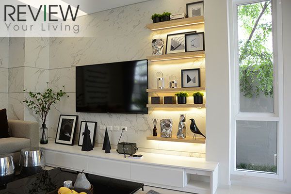 Living Area ถูกออกแบบไว้ในโซนด้านในสุดของตัวบ้าน มีหน้าต่างบานใหญ๋เปิดรับแสงธรรมชาติ และเห็นวิวสระว่ายน้ำได้พร้อมๆ กัน
