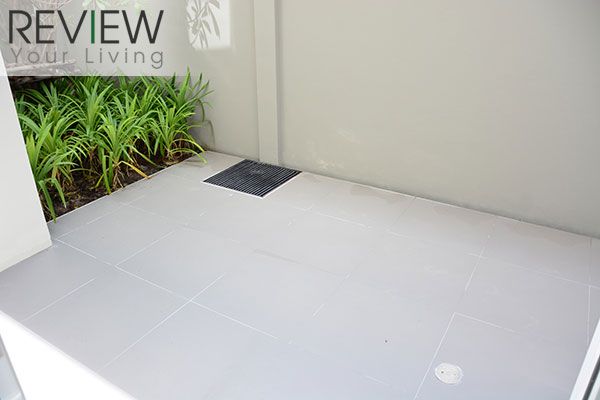 ทางโครงการทำเป็นลานปูกระเบื้อง มีท่อระบายน้ำไว้เรียบร้อย